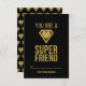 A faux simulated gold foil "Super Friend" design. Personalise the custom text above. You can find additional coordinating items in our "Gold Superhero Friend" collection.