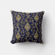 Gold Swirl Damask Pattern on Blue Cushion