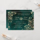 It features an emerald green background with frilly and ornate faux foil gold filigree and chic script lettering.