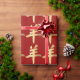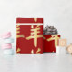 Gold Symbol Chinese Sheep Goat Ram Deep Red Wrapping Paper