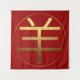 Golden Ram or Goat Chinese Symbol with an embossed digital effect on dark red background. Design on square wall tapestry (57"x57"). You can easily change size of the design and background colour by clicking the customise button. Matching paper napkin and more... Perfect for Chinese New Year of The Ram or Goat 2027 or Birthday (people born in Ram or Goat year). --------- "The Goat (Chinese: 羊; pinyin: yáng) is the eighth sign of the 12-year cycle of animals that appear in the Chinese zodiac related to the Chinese calendar. The sign is also referred to as the Ram or Sheep sign, since the Chinese word yáng is more accurately translated as Caprinae, a taxonomic subfamily which includes both sheep and goats. (...) People born within these date ranges can be said to have been born in the "Year of the Goat", while also bearing the following elemental sign: