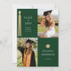 This chic graduation invitation features your photos with a tassel and a graduation cap in faux gold on a forest green background. The reverse side features a faux gold background with white geometric patterns. Change the front background colour and personalise it for your needs. You can find matching products at my store.
