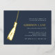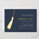 Celebrate their big milestone with these chic foil invitations that are perfect for a graduation celebration. Luxe design features the graduate's name and a grad cap tassel illustration in elegant gold foil on a navy blue background. Personalise with your party details aligned at the right in modern white lettering. An elegant and upscale choice for fabulous grad parties!