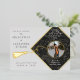 Elegant, and modern gold foil graduation party invitation. Easily personalise the design by adding the graduate's name, and graduation year, to create a unique party invitation card to announce your graduation and the graduation party. Use your school colour scheme to change the cap topper colours.