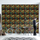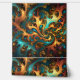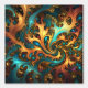 Pictured In A Abstract Art Design Are Gold Teal And Orange Flames.