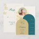 Announce your daughter's baptism with this sophisticated and beautifully designed RSVP Card. Featuring a harmonious blend of muted gold and deep teal, this design radiates elegance and grace. The delicate floral line art adds a subtle touch of nature, perfectly complementing the arched layout. A refined mix of modern serif and script fonts enhances the timeless aesthetic. The personalised photo frame at the top makes this invitation a meaningful keepsake. Ideal for baptisms, christenings, and religious ceremonies, this RSVP Card sets the perfect tone for a heartfelt celebration.