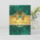 Elegant teal jewel and damask with gold silk bow and tiara.