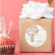 This design features an adorable bear with balloons and watercolor clouds with faux gold foil stars.