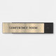 Conference room door sign design featuring a shiny, smooth gold texture background, custom black text.