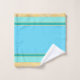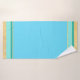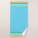This towel set features perfect poolside colours! A textured gold design border with aqua and turquoise stripe accents make for that cool beachy feel. Customise the bright blue background to any colour you need.