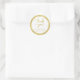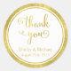 Gold glitter confetti & foil effect thank you text in a swirly font with room for your personalised text on a round sticker. These stylishly simple stickers are perfect for party favours, wedding favours, bridal showers and envelope seals.