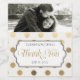 Style label on sweet gold dots with Thank You Typography Your Photo elegant Romantic Rustic Wedding Wine Label. Featuring your photo here on this wine bottle label for a unique personalised photo wine label that will capture that custom romantic feel for all your guests.