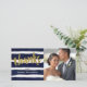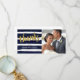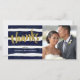 This glam thank you card features faux gold foil, hand-lettered brush script calligraphy, painted navy blue watercolor stripes, and a square photo template.