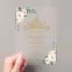 Gold Tiara Blush Flowers Quinceañera Acrylic Invitations