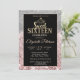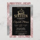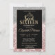 Gold glitter tiara on silver bokeh and rose gold glitter Sweet 16 birthday party invitation.