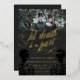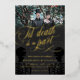 Elegant dark Halloween or goth wedding invitation with Til death do us part written in a swirly gold foil calligraphy script. Add your wedding invitation wording in gold foil against a dark grey background with black skeletons and personalise with a photo!