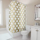 Gold Tones & Geometric Pattern On White Shower Curtain