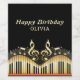 Trendy music keyboard with notes, treble clef, notes, and red lines on the bottom.