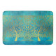 Gold Tree and Leaves Reflection on Turquoise Blue Bath Mat