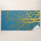 Gold Tree Branches Pattern Blue Background Beach Towel