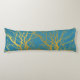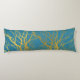 Gold Tree Branches Pattern Blue Background Body Cushion