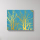 Gold Tree Branches Pattern Blue Background Canvas Print