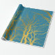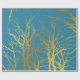 Gold Tree Branches Pattern Blue Background Wrapping Paper