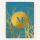 Gold Tree Branches Pattern Blue Monogram Notebook