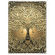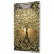 A beautiful ornate design with a gold tree of life with an ornate frame and a heart at the roots. There is a night sky background.