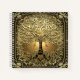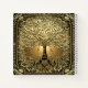 A beautiful ornate design with a gold tree of life with an ornate frame and a heart at the roots. There is a night sky background.
