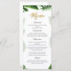 Menu for any party celebration with gold glitter text & tropical leaves.