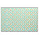 A gold & turquoise ikat pattern made up of diamond shapes. This tribal look pattern is chic and modern.
