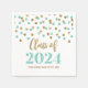 Customisable graduation napkins for class of 2024 with glamourous gold and turquoise confetti pattern.