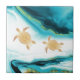 Gold Turtles Teal White Ink Tile