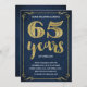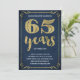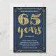 This swanky, stylish 65th birthday party invitation features vintage typography, elegant flourishes, brush script calligraphy, faux gold foil, and a chic navy blue background. Add photos or additional text to the back of the card if desired.
