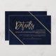 Gold typography on navy blue watercolor and faux gold geometric stripes chic wedding directions and details , perfect for elegant, beach wedding,
