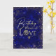 This modern and visually striking birthday greeting card is designed as a universal birthday wish, suitable for anyone. The front showcases a deep, night-sky inspired background filled with shimmering gold dust and tiny heart details that resemble glowing stars, creating a celestial and elegant atmosphere. The gold typography on the front blends flowing script, decorative lettering, and artistic font styling to form a bold, contemporary text design that feels both expressive and refined. Inside the card, there is a sample photo that can be replaced with your own image or removed entirely, along with dedicated space for a personal birthday message and your name. The entire card is fully customizable and fully editable, allowing you to change the photo, text, and content easily. This photo greeting card is ideal for anyone looking for a modern, artistic birthday card with a strong typography focus and a timeless, celebratory feel.