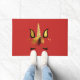 Bold golden unicorn face with heavy black lashes and golden touches on red background makes a perfect "first impression" for all your guests.