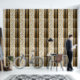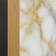 Exquisite white marble slabs with dramatic gold veining alongside warm wood planks and matte black accents-opulent vertical slat design for lavish bathrooms, walk-in closets, luxury offices, or statement walls. Superior peel-and-stick technology delivers seamless application and pristine removal, renter luxury perfected.