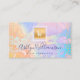 A sparkly, faux gold foil monogram square and oblong dots overlay a pastel turquoise blue, purple, pink, and yellow orange watercolor background on this chic, girly, modern monogramed business card. Personalise with your initial, full name, and business on the front. Fill in the faux gold foil back side with your phone numbers, address, email, website, and social media accounts. Makes a chic, professional, and stylish statement wherever you go.