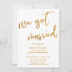 This bold, simple suite's distinction is due to the modern, casual handwritten font used for accent phrases and the loose waves pattern placed over the background. The waves evoke the idea of celebratory streamers. In this piece, the handwriting font was used to create a graphic depicting the words "we got married". Both this header text and background pattern were embellished with a faux gold foil pattern. Use the template fields to add your personal details and make this festive design your own. The white background can be changed to any colour you prefer. Please reach out with any special requests or for customising assistance. // 100 //