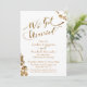 This design features an elegant, unique script font accented with hearts to render graphics depicting the words "We Got Married". The graphic was overlaid with a faux gold foil effect for a celebratory vibe. Accents of gold-enhanced botanical elements have been added to the edges and over the back. Your own text is easily added for customising this template as little or much as you wish. Change the background to any colour you prefer. All layers were added separately and left unlocked to give you maximum design control; rotate, re-position and resize as needed. Please do not hesitate to reach out to me for special requests or for assistance with customisation.