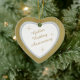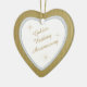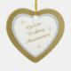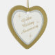 This is an elegant ornament to celebrate a couple's 50th Wedding Anniversary, either at the time of the celebration or for Christmas. It features a white heart framed in faux diamond gems on a faintly striped metallic gold background. Inside the white heart is your text in matching gold, plus twinkling gold star images. The text is fully customisable, so you may make it say whatever you'd like. There is a 2nd text field on the back, which has the same faux diamond border and inside image. This is a special family keepsake gift that will be treasured forever. *Please note - the image is printed, and the ornament does not contain metal, glitter, or gems.*