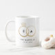 A modern monogram gets glam with intertwined gold wedding rings with easy to personalise text for your initials, married name and wedding date on this classic white mug making it a fun house warming or an anniversary gift for the newlyweds.