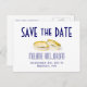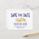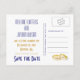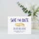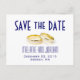 Modern Simple Navy Blue Save the Date Postcards with photo of gold wedding rings. Customise with your personal wedding announcement information. A beautiful, elegant design using fun font styles for text combined with two yellow gold and silver wedding bands.