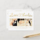 Gorgeous faux gold foil typography on the front of this designer postcard which you can upload into with 3 of your own engagement/wedding photo portraits. Easily and quickly personalise this designer professionally printed thank you postcard here and now by just typing over the example text and adding your own photographs. Elegant, chic, simple and classy gold script/cursive typography