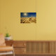 Gold wheat and blue sky with sun poster