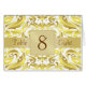 Add our White & Gold Damask Table Number Folded Card for an elegant touch to your wedding!