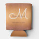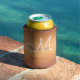 Wedding reception favours. Gold white burgundy floral monogram custom name beer can cooler for guests. Chic, elegant, modern, trendy, classy, stylish, beautiful succulent metallic pattern. To change the typography, click on edit design. Image copyright Marg Seregelyi Photography.
