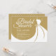 A chic bridal shower invitation featuring an elegant wedding gown on a gold background with beautiful white script text and all your special bridal shower details personalised in chic white text. The reverse features a matching background colour with a polka dot pattern. You can customise the background colour both front and back to coordinate with your wedding theme.